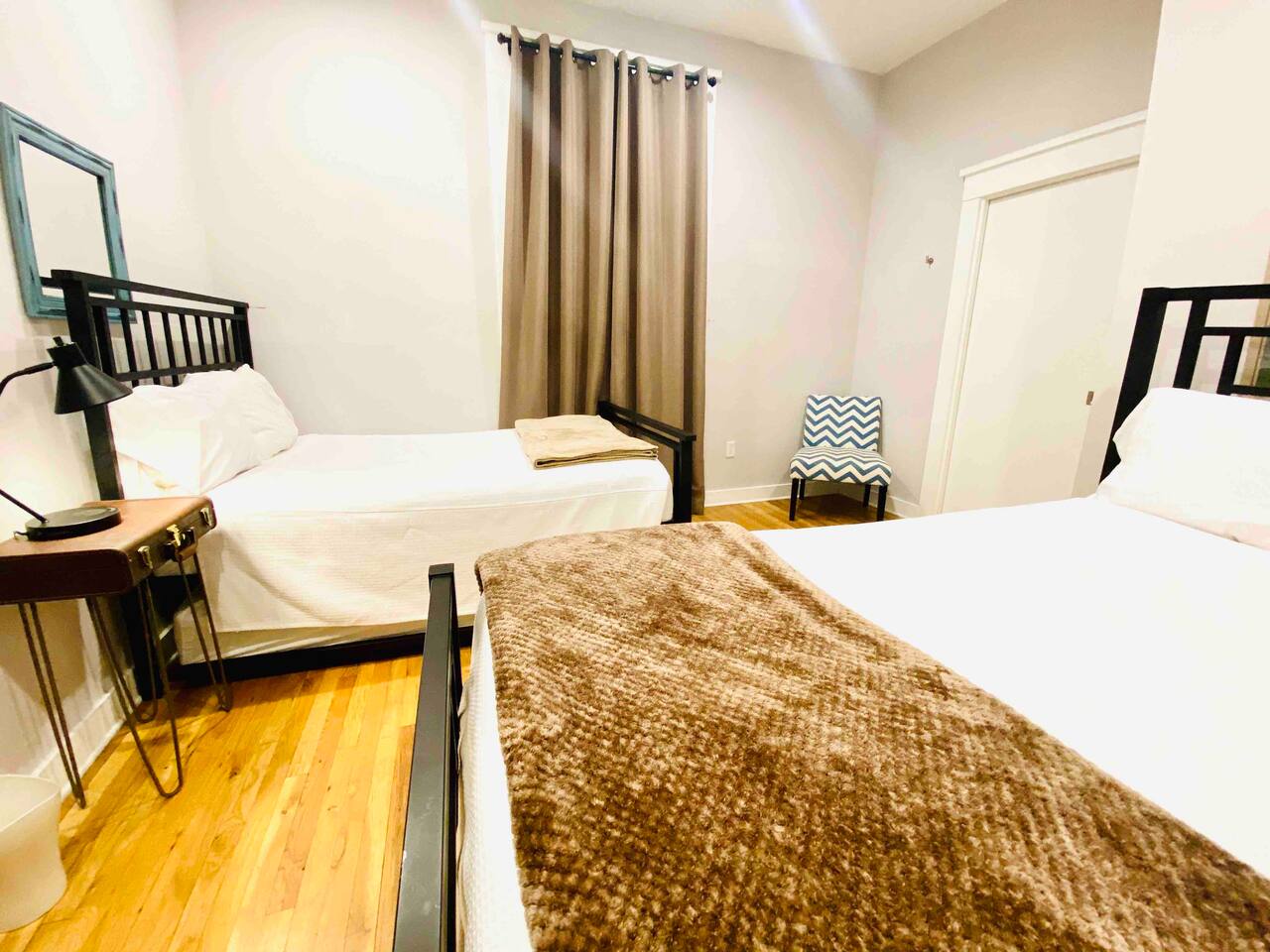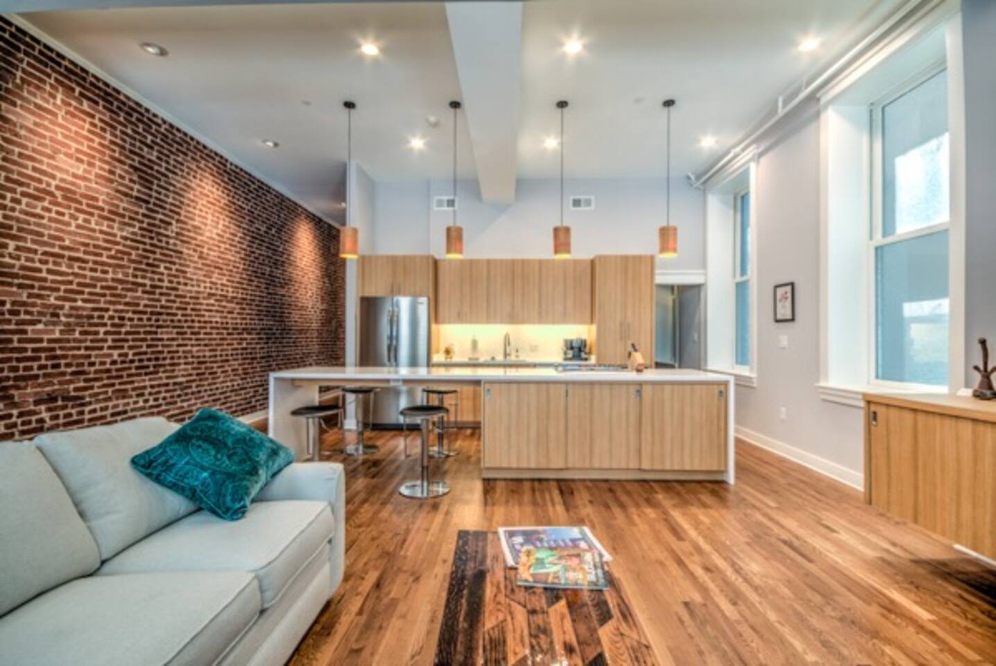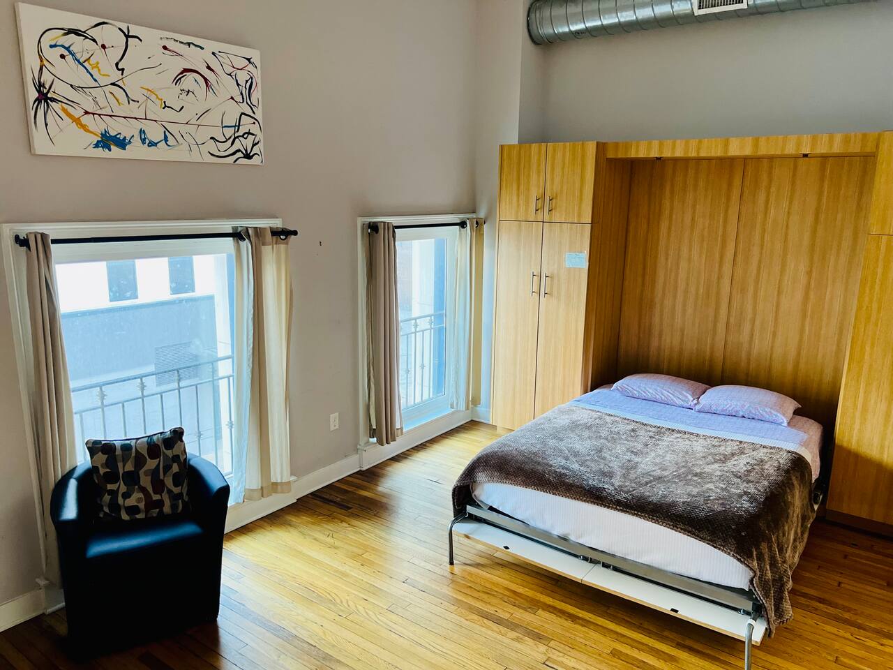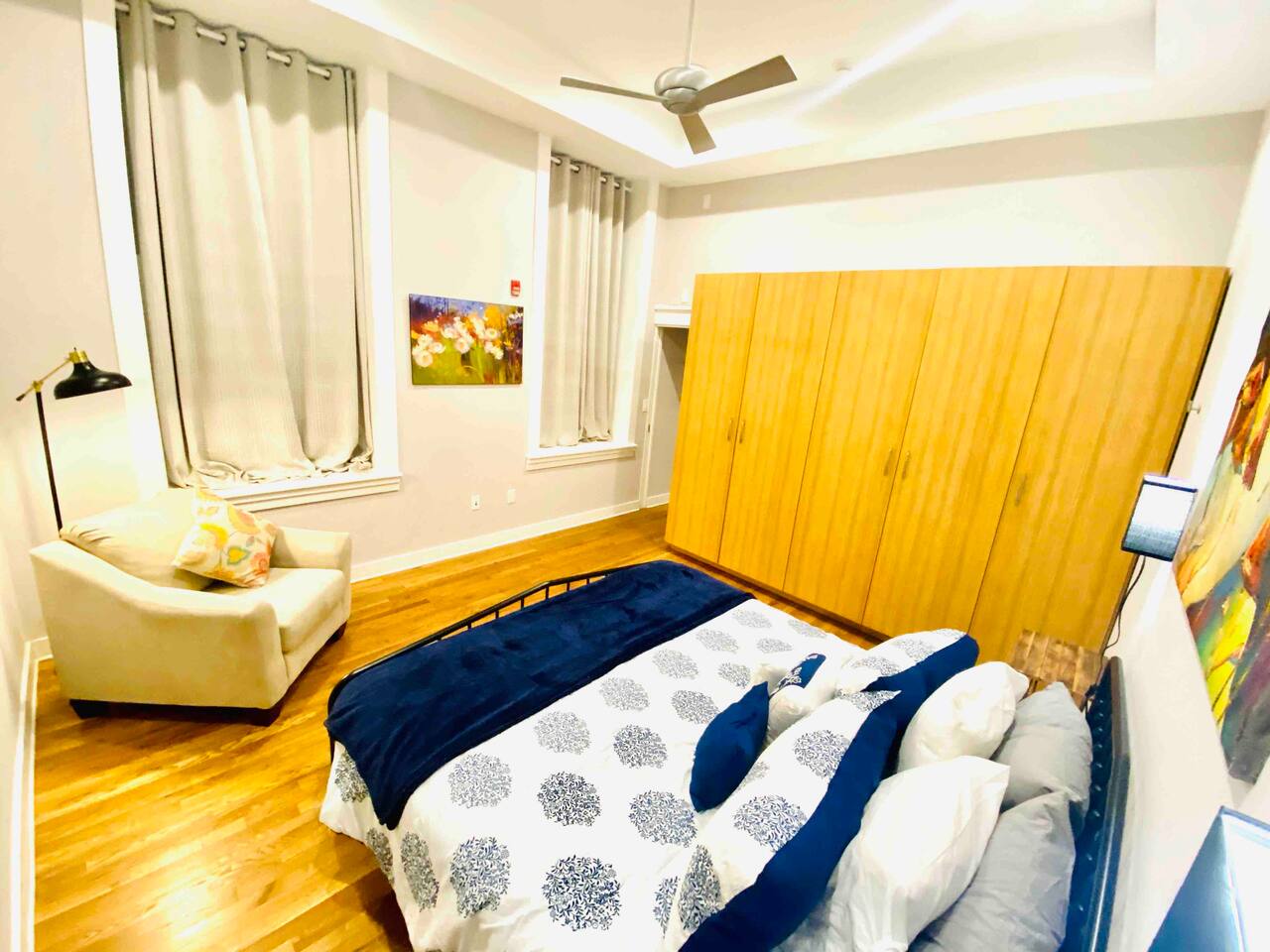 Guest have access to entire 2 stories above the commercial space on the ground level. Roof access (for maintenance) is off-limits and locked. Gym Access: Guests have complimentary access to a nearby fitness center with our building’s key fob. It includes cardio equipment, free weights, and machines.