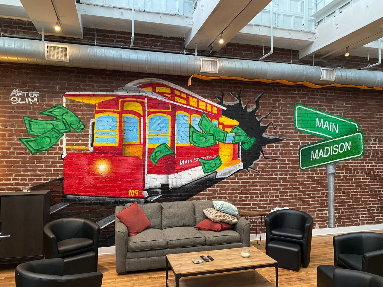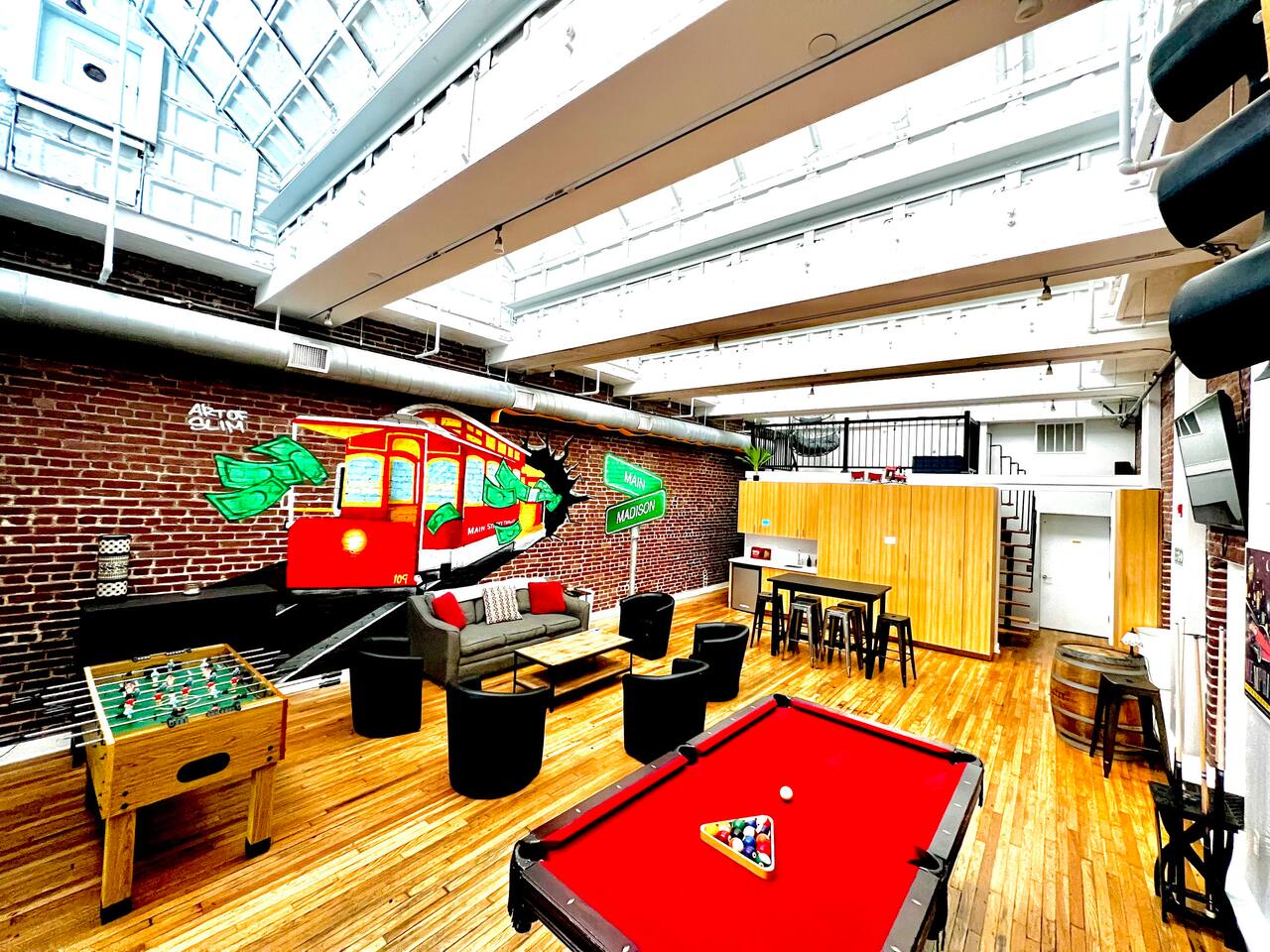 Experience the beauty and charm of Memphis in this one-of-a-kind Airbnb, located in the heart of the city. This historic building, once a bank, boast a truly unique architecture, with an open floor game-room on top floor featuring a pool table. Perfect for hosting events, this property is on the Trolley line at the corner of Madison and Main St. A short walk away from Beale Street, The Orpheum, Autozone Park, FedEx Forum and Memphis’ finest restaurants… Don't miss out on this true Memphis gem!